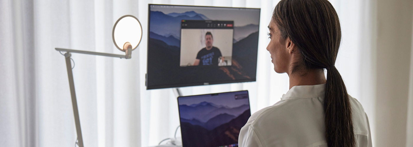 Justerbara skärmställ: Placera skärmar i ögonhöjd för att förebygga nack- och axelbelastning.