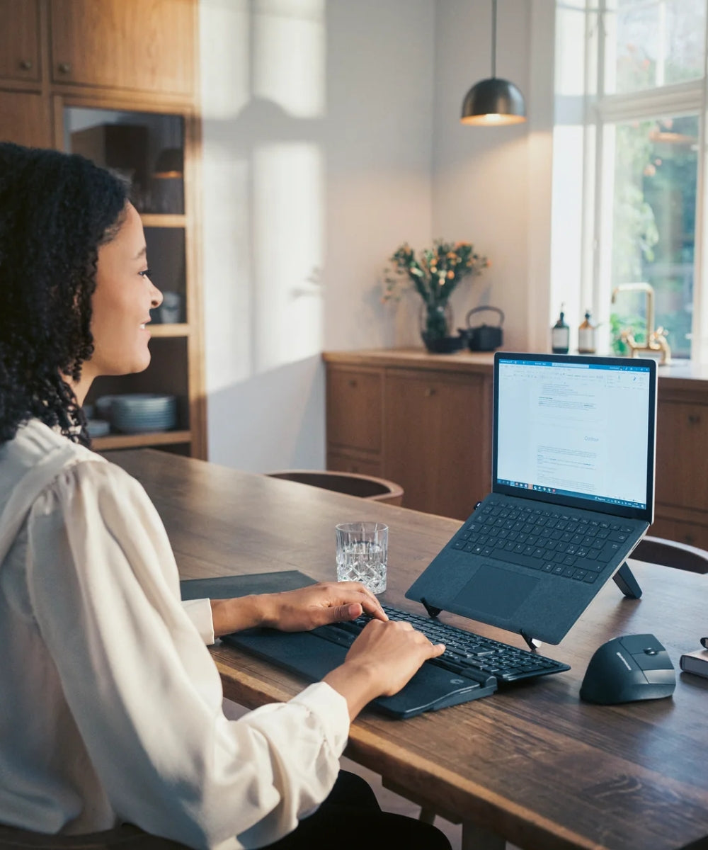 BarMouse Silver Slim placerar musfunktionerna direkt framför dig och minskar behovet av att sträcka ut händerna. Med BarMouse kan du arbeta med händerna nära kroppen. Detta minskar belastningen på nacke och axlar och kan förebygga musarmproblem.
