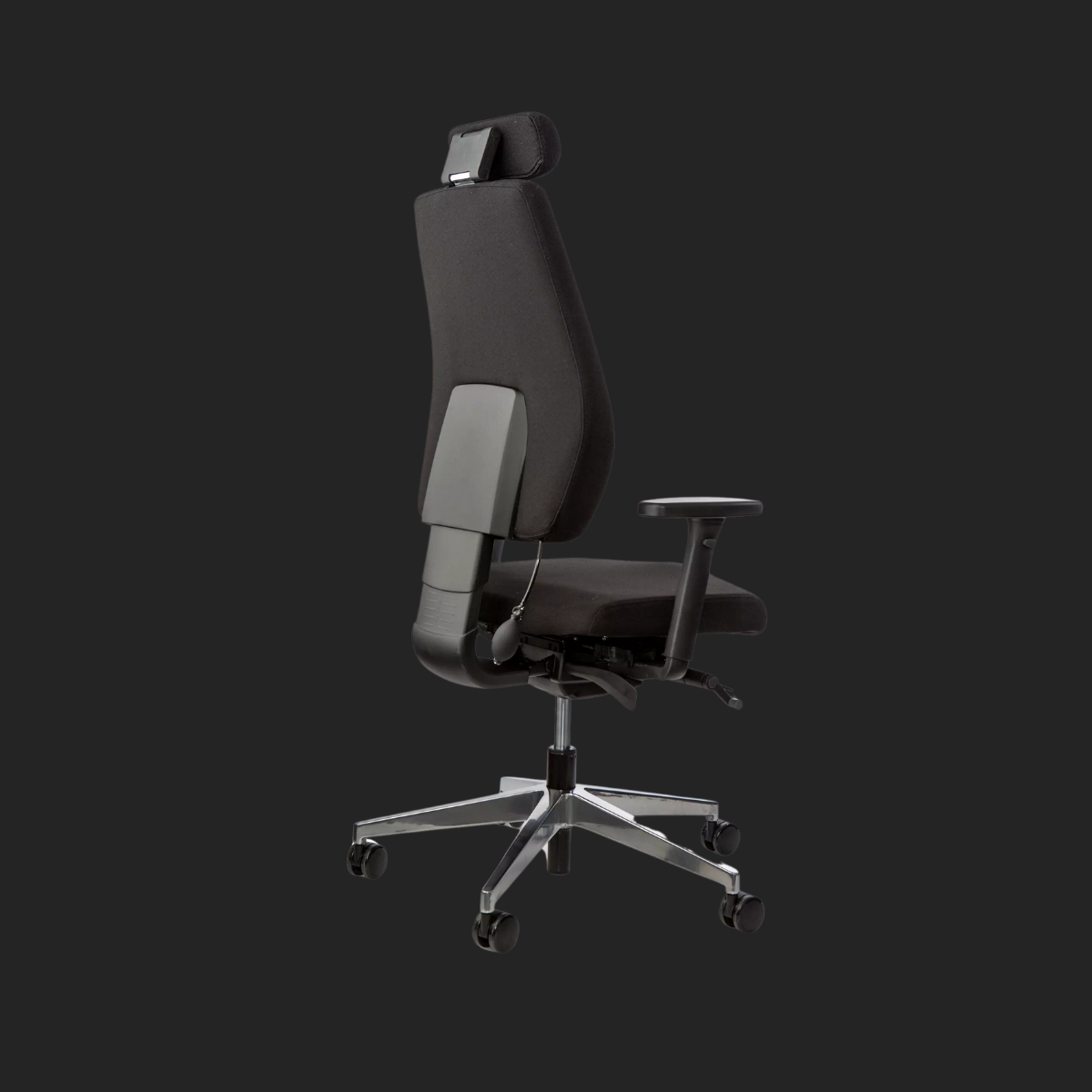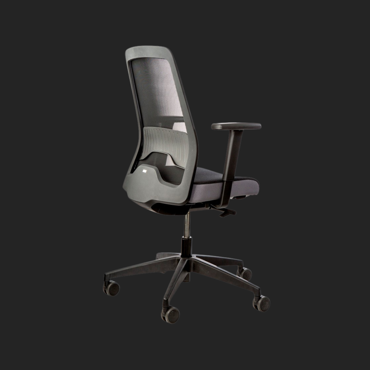 Denna modell erbjuder utmärkt svankstöd, justerbara armstöd och är designad för långvarig användning. 98% av materialen är återvinningsbara, ett miljövänligt val.
