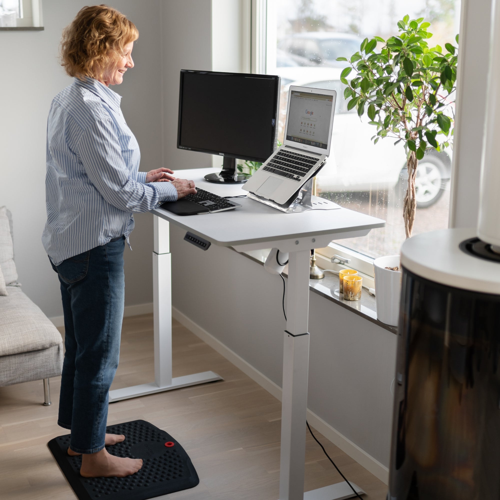 Om möjligt, testa bordet till exempel i ErgoFinlands showroom. På så sätt kan du försäkra dig om dess passform, komfort och funktionalitet.