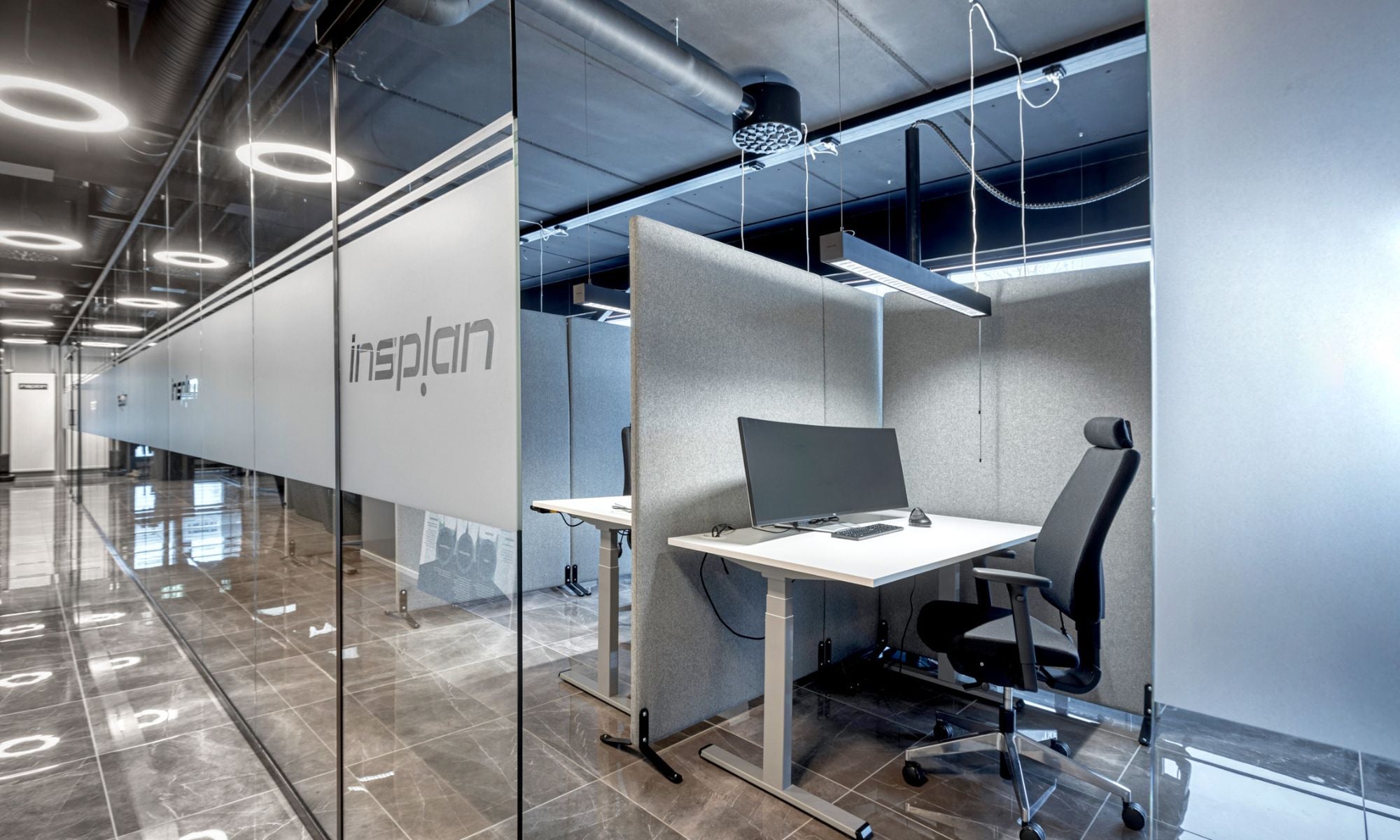 Varje arbetsstation är designad och implementerad med noggrant övervägande för att säkerställa bästa möjliga ergonomi för arbetaren. Varje medarbetare är en individ, vilket innebär att arbetsplatser utformas och implementeras efter individens behov och önskemål. Så gick vi också tillväga med Insplan. Vi har genomfört en omfattande kartläggning av medarbetarnas behov och önskemål om ergonomiska arbetsplatser med hänsyn till kontorsytor och lokaler. När undersökningen var klar designade vi individuella ergonomiska arbetsstationer för varje anställd med experterna på ErgoFinland.
