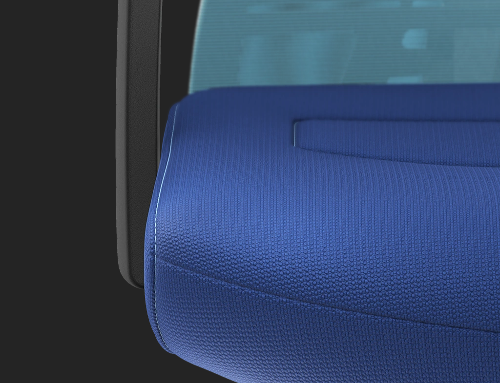 - Sits klädd i Manhattanblått tyg